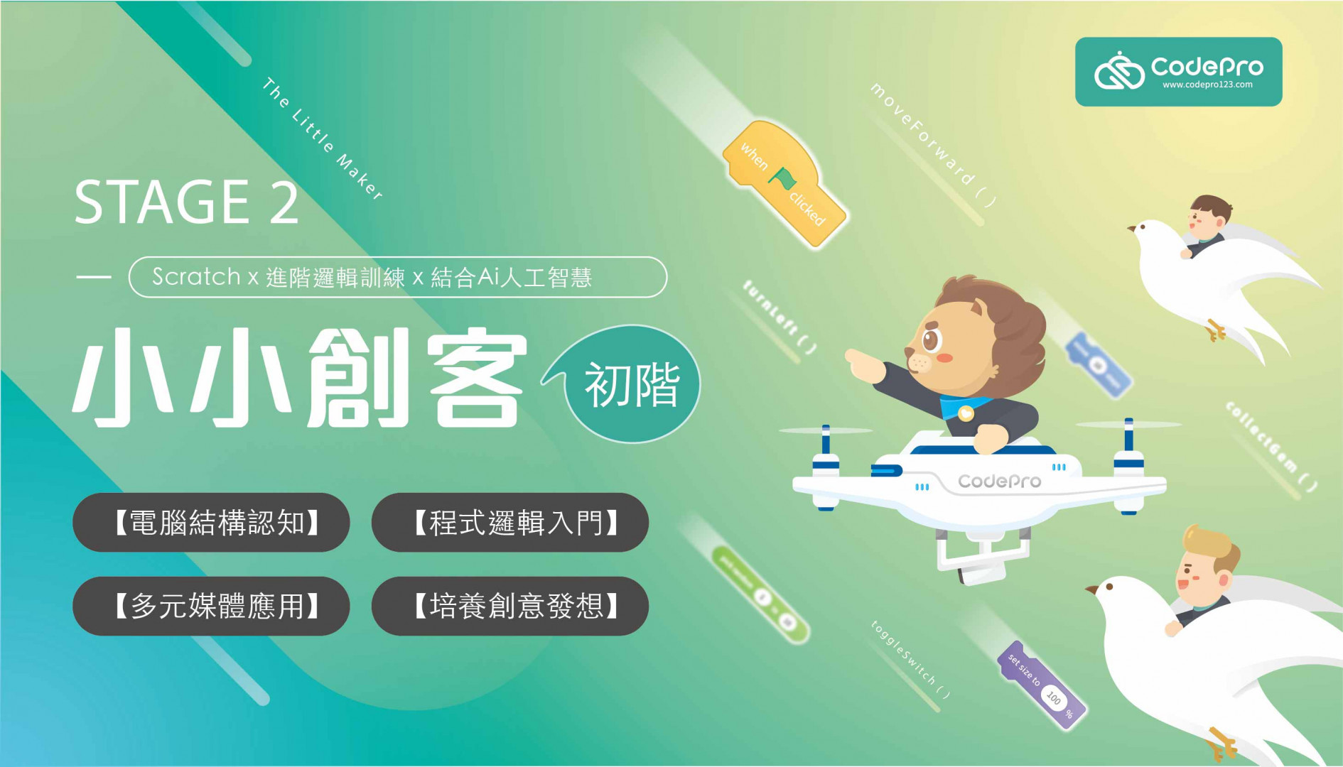由CodePro獨家開發的螺旋階梯式學習地圖,從4歲到18歲,適齡適學的階段式課程,